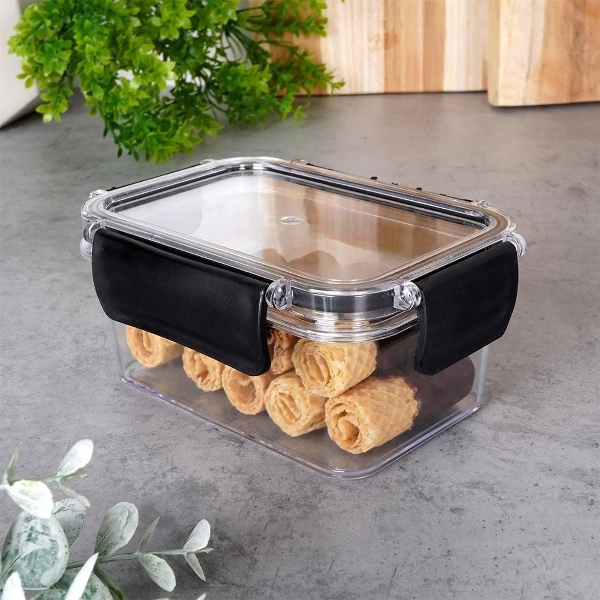 EH Excellent Houseware - Lebensmittelbox – transparent, Gummidichtung, vier Clips