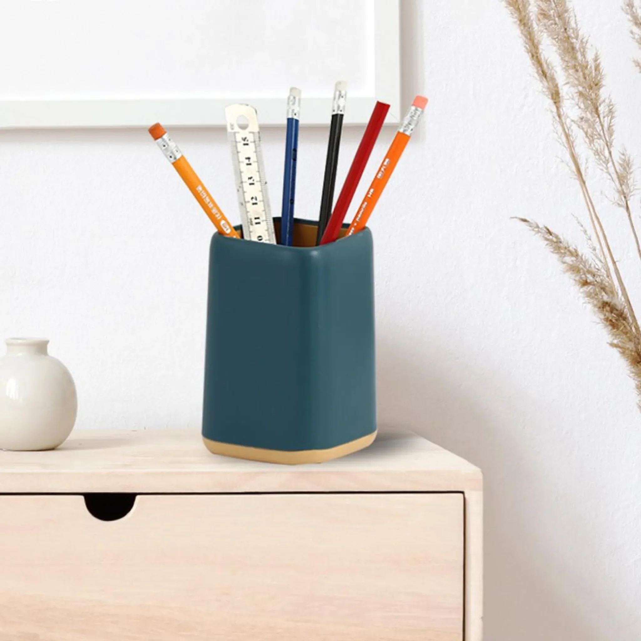 Der zweifarbige Stifthalter bietet reichlich Platz für Stifte, Bleistifte, Lineale und andere Schreibutensilien. Gleichzeitig eignet er sich ideal zur Organisation von Kosmetikartikeln, Schmuck oder kleinen Accessoires und ist perfekt für Büro, Schule oder zu Hause.
