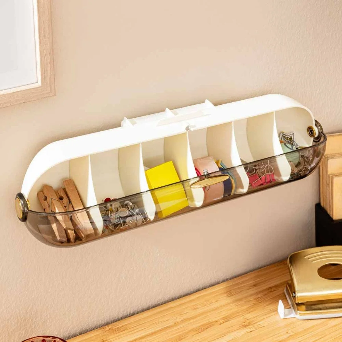 Highlights: Strukturierte Aufbewahrung, schneller Überblick dank transparentem Deckel, einfache Montage über Klebestreifen, horizontal oder vertikal verwendbar, ideal für Büro, Küche, Bastelraum oder Kinderzimmer.