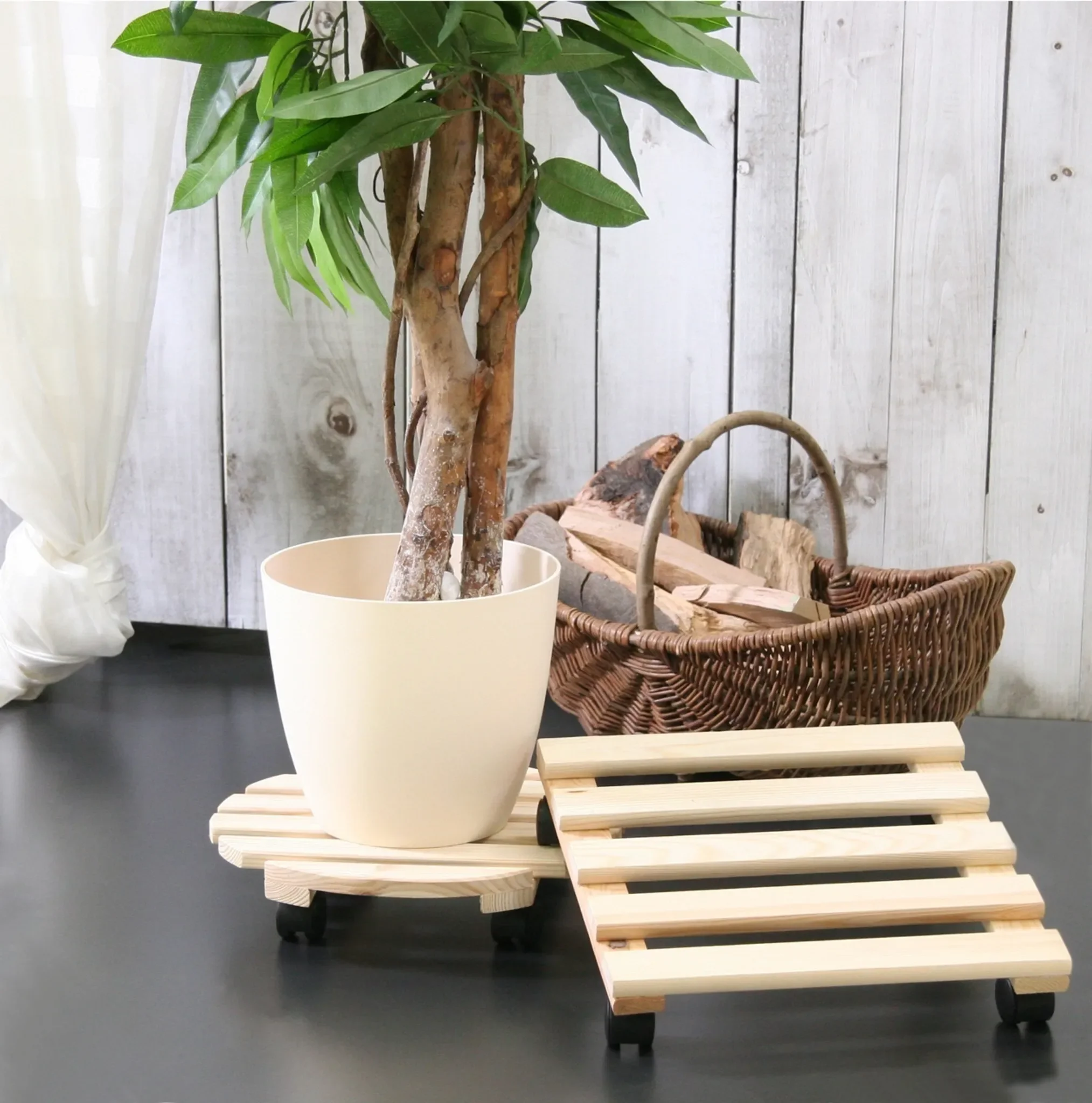 Highlights: Erleichtert das Bewegen schwerer Pflanzgefäße, massives Holz, sofort einsatzbereit, stabil und belastbar.