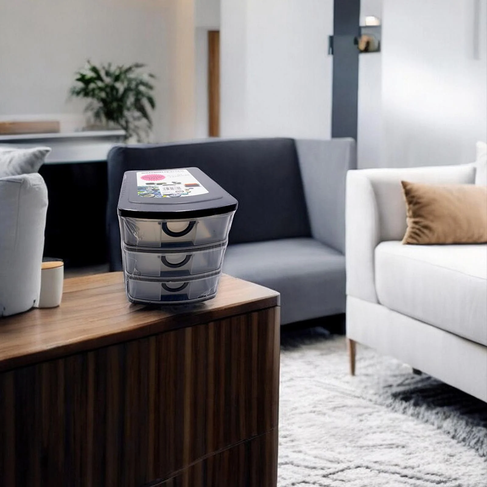 Diese stapelbare Aufbewahrungsbox bietet drei stabile Schubladen für Kleinteile, Zubehör und Utensilien aller Art. Das transparente Design ermöglicht eine schnelle Übersicht und einfache Entnahme der Inhalte.